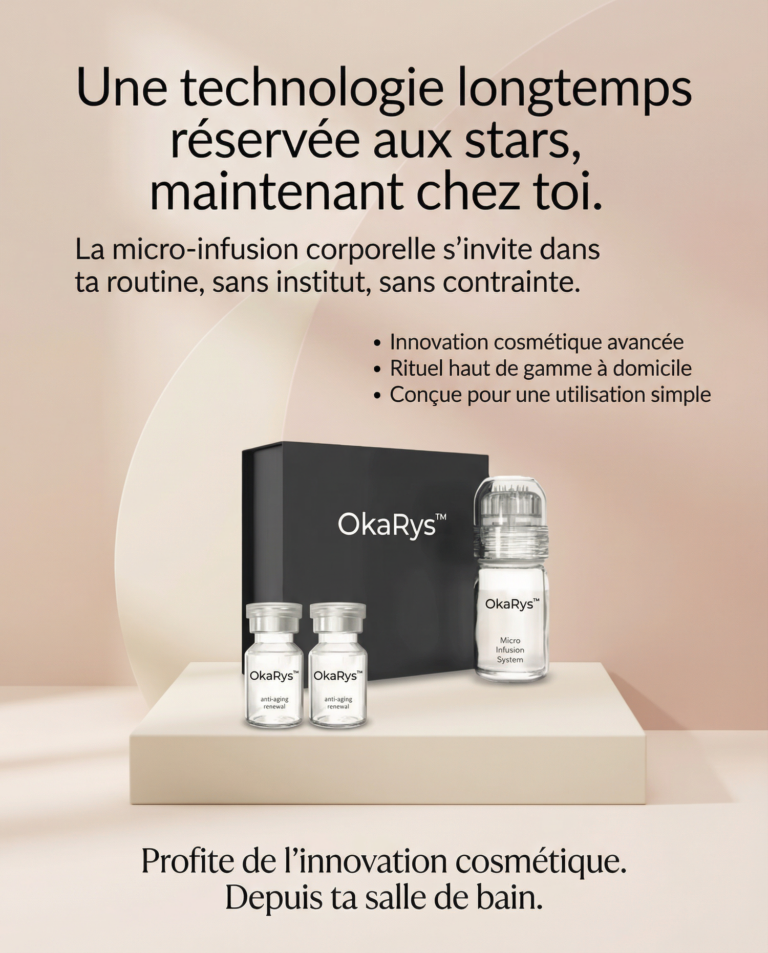 OkaRys est un système de micro-infusion à domicile spécifiquement conçu pour atténuer visiblement les vergetures rouges et blanches sur le ventre, les cuisses, les fesses, les hanches, etc.
